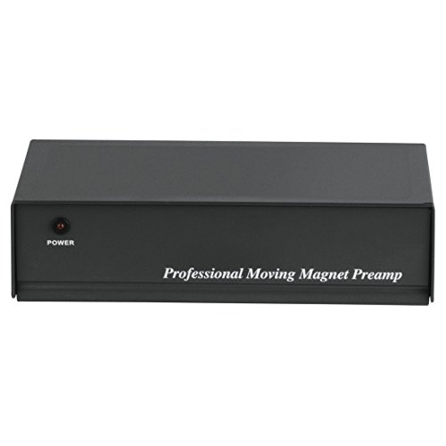 Este producto es un amplificador para tocadiscos que está diseñado y fabricado con una carcasa de metal pintada completamente en color negro y que tiene l finalidad de brindar protección a los componentes internos del preamplificador.