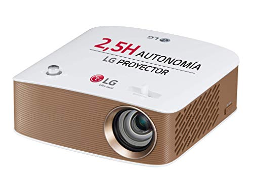 Este modelo de mini proyector LED del fabricante LG es una alternativa funcional que tiene un diseño compacto, liviano y portátil, que está disponible en color blanco y dorado. Este proyector está equipado con una batería que le brinda autonomía para dos horas y media de uso continuo.