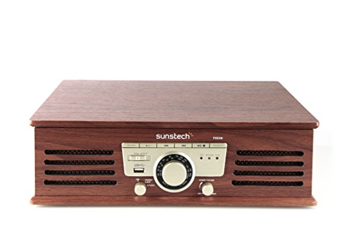 El tocadiscos retro 1byone S-471EU-0003 es otro de esos modelos que apreciarán especialmente los amantes de lo tradicional. Este tocadiscos de corte clásico cuenta con una bonita imagen externa con toques que recuerdan a la madera y un frontal plateado muy elegante. En esta zona se encuentra el panel de control, donde destaca el puerto USB. En él podrás conectar cualquier dispositivo de memoria y convertir los temas de tu disco en formato digital.
