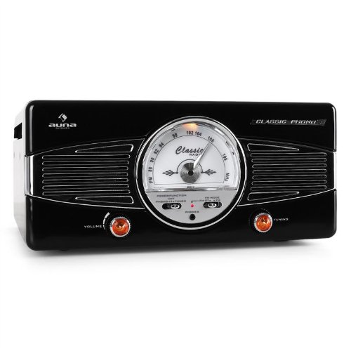 Para quienes prefieren un tocadiscos vintage o de estilo retro, el modelo Auna MG-TT-82B es una pieza interesante. Este producto consta de un bonito formato exterior, recién llegado de los 50, que cuenta con un tocadiscos en la parte superior y una radio analógica FM situada en la parte frontal. El tocadiscos es capaz de reproducir discos a 33 y 45 revoluciones, contando igualmente con un adaptador para el uso de vinilos EP.