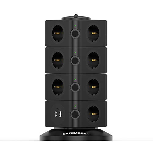 2. SafeMore Regleta de Enchufes Vertical de 15 Tomas