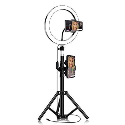 Con este aro de luz te será sencillo obtener la iluminación deseada en todo tipo de fotos y vídeos, ya sean grabados o en vivo. Cuenta con una base inclinable y el trípode puede ajustar su altura en varios niveles.