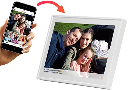 Este novedoso marco tiene una memoria de 8 GB, lo que significa que tendrás espacio suficiente para guardar muchas fotografías de cumpleaños, viajes, bodas, etc. Además, puedes conectarlo con el teléfono mediante la app Frameo, que está disponible para Android e iOS. Si haces esto, podrás compartir fotos con familiares o amigos fácilmente. Imagina que tu abuela no pudo estar en la boda, simplemente, le envías las fotos y ella las verá en el marco digital.